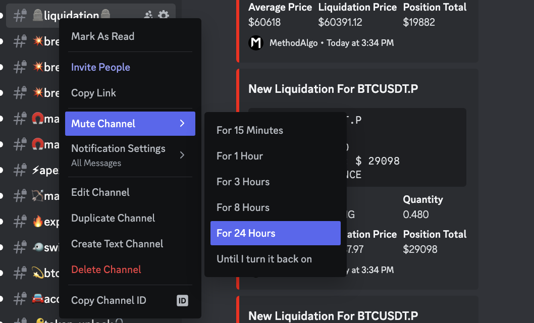 If you find the alerts too frequent, you can right-click on the channel and select Mute to silence the alert channel.