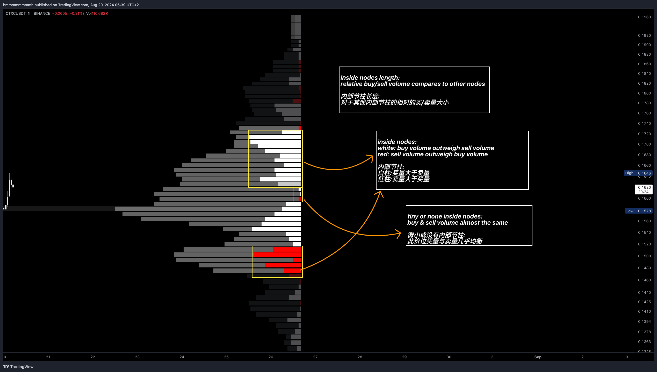 The POC is the area with the highest trading volume, where both bulls and bears have accumulated significant positions. By analyzing the internal nodes, one can assess the strength of buying and selling at this level. When the price pulls back to the POC, previous buyers may intensify their buying efforts, driving the price away from this area to continue trapping the bears, and vice versa.