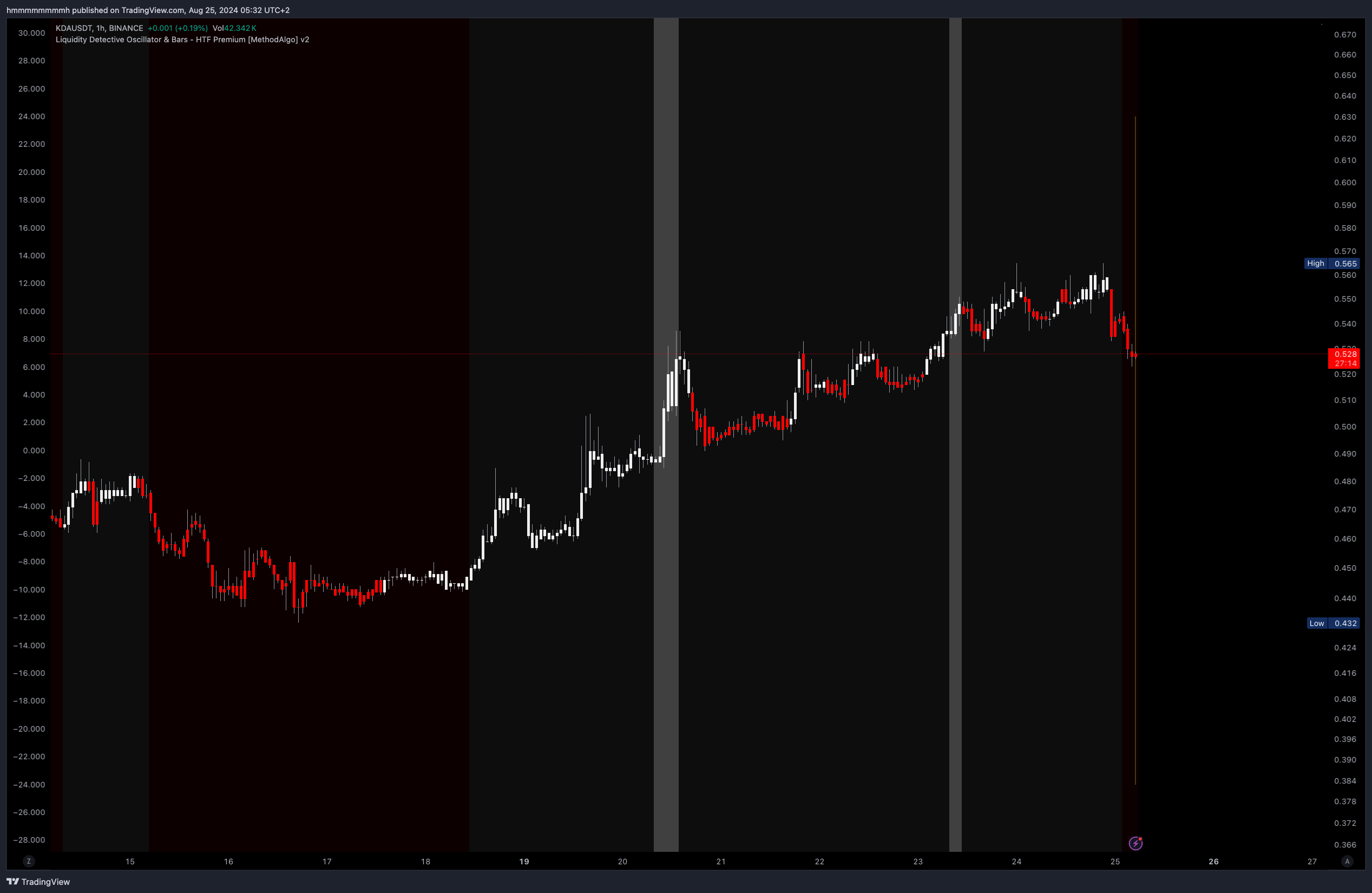 在MethodAlgo的工具集中,背景色虽然不起眼,但它是最接近买卖信号的元素之一。在流动性侦探中,背景色是基于RSH算法计算当前动能趋势的结果。