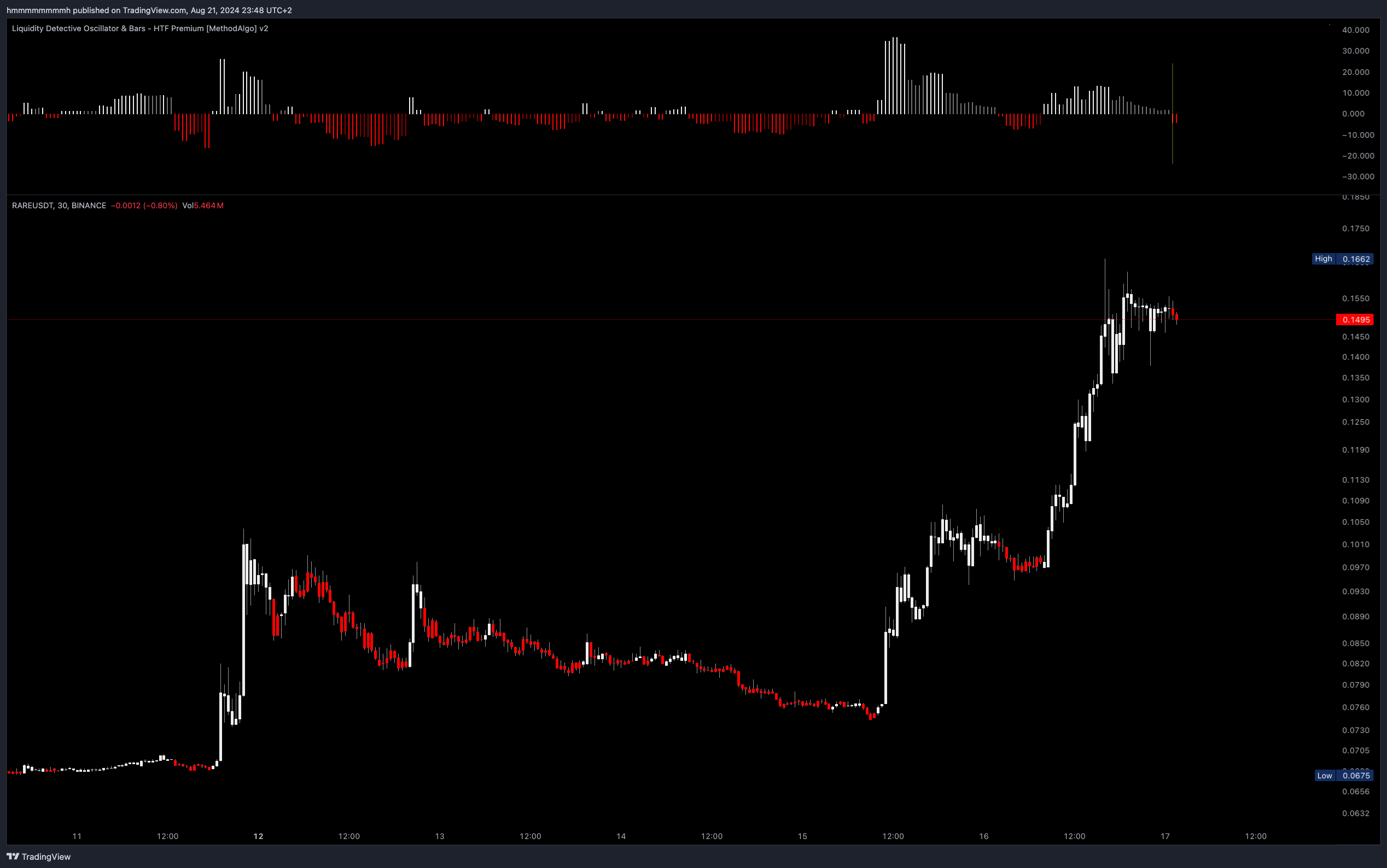 指标Liquidity Det. 流动性侦探RSH势强动能与蜡烛颜色本页总览 RSH & ColorBars势强动能与蜡烛颜色 概念 RSH(Relative Strength Histogram)是一个高效的趋势动能工具,通过转译高时间框架的RSI,将单一RSI策略的低成功率和高误判率,转化为易于分析的二层趋势指标。通过观察柱形的长度和颜色,交易员可以迅速了解短期内的买卖循环变化,识别趋势动能的变化,并提前发现逆转信号,从而获取市场早期的进出机会。 提示数据框架