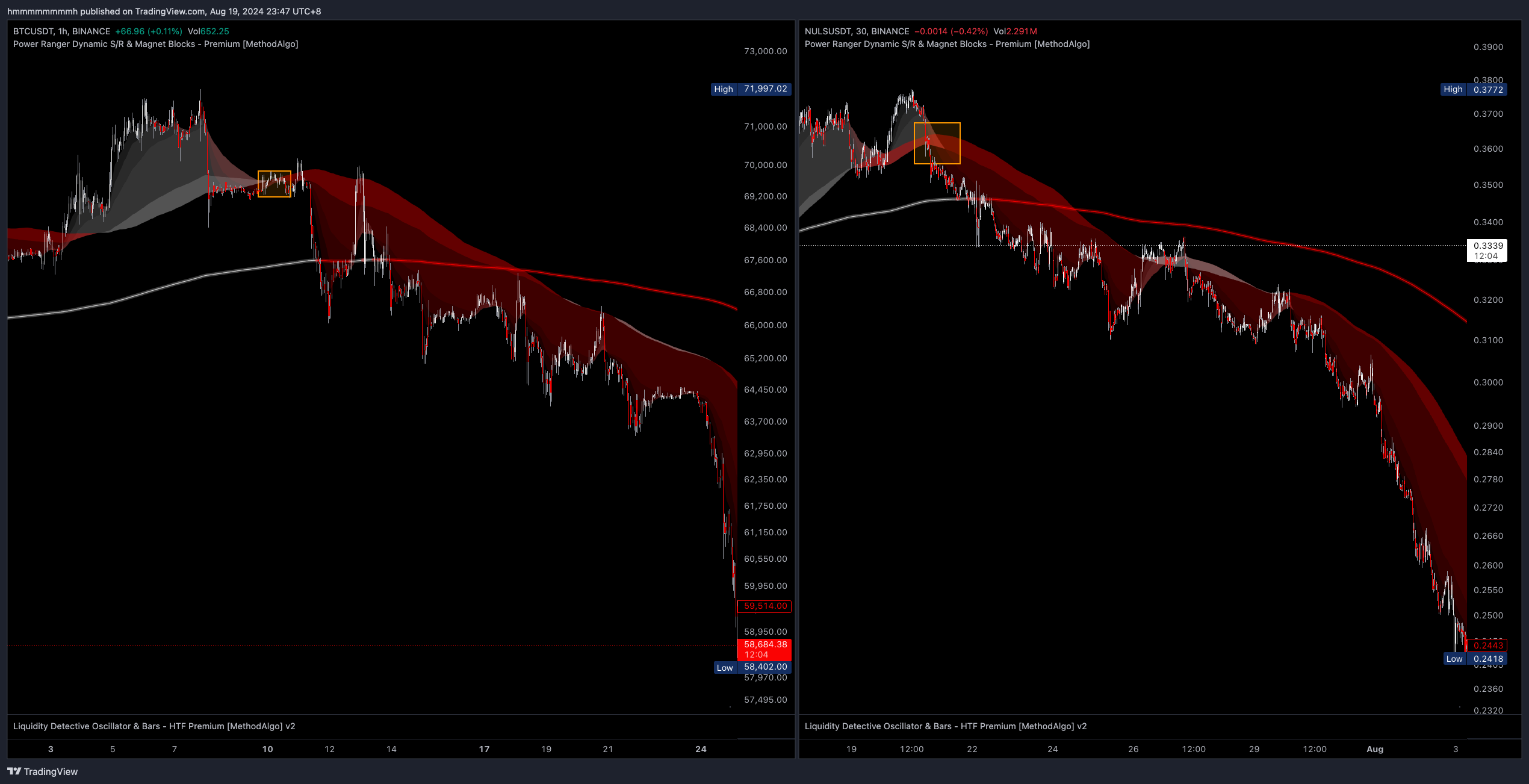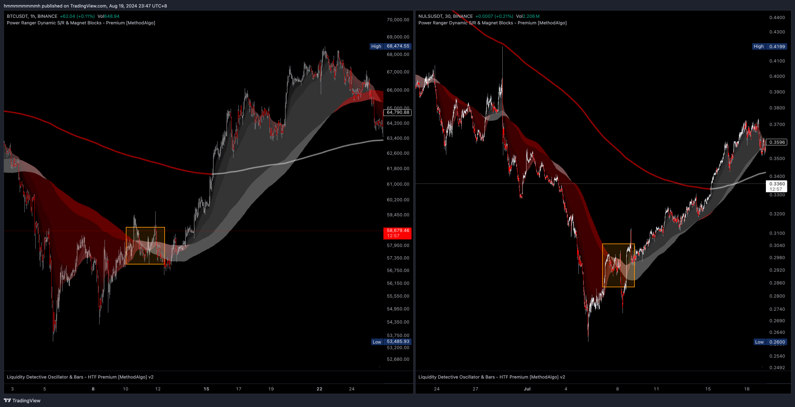 - 在运行很久的上升或者下降趋势中,云基区域是优质的Dip入场位,通常一个上升/下降趋势中有1-2次机会,之后便不建议